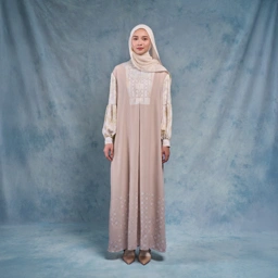 Dress/gamis wanita dengan bahan yang nyaman dikenakan untuk menemani momen spesial Hari Raya. Mengusung desain anggun dan modern minimalist look, dipadukan dengan motif bernuansa alam.
