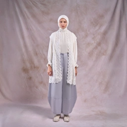 Outer wanita tanpa lengan terbuat dari bahan premium yang ringan, breathable, flowy, dan memiliki efek glossy. Dilengkapi dengan detail renda yang cantik, rompi ini menambah sentuhan feminin dan anggun secara instan. Pilihan tepat sebagai layering untuk tampil lebih elegan di momen Lebaran, acara formal, maupun kondangan.
