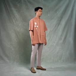 dengan kancing tersembunyi (hidden button) dan saku fungsional.
