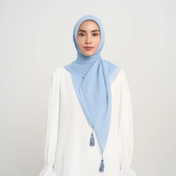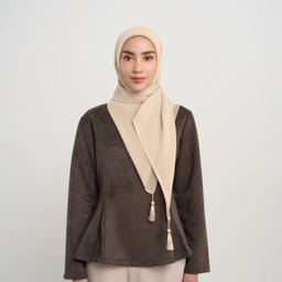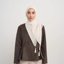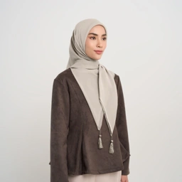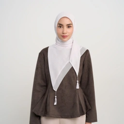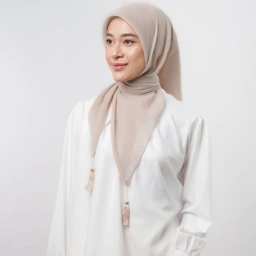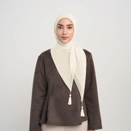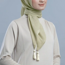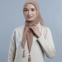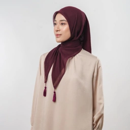 Plain paris tassel hijab segi empat berbahan dasar Japan Cotton Voil, dengan hiasan tassel di 3 sudutnya.