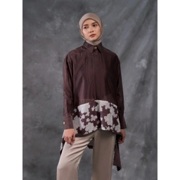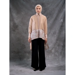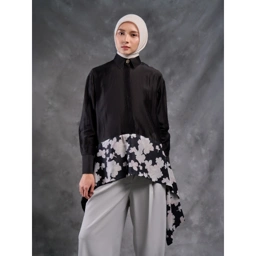 Kemeja wanita dengan material glasse fabric yang semi-transparan dan berkilau. Dihiasi detail motif bunga di bagian depan yang menyerupai untaian obi belt. Cocok dikenakan untuk momen spesial menjelang Lebaran, maupun saat hari raya dengan look yang simple dan elegan.