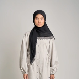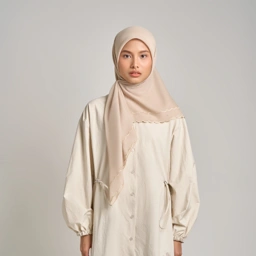 Hijab segiempat berbahan Paris Premium Jepang dengan hiasan bordir gelombang berpadu crystal di bagian sisi serta motif cutwork bunga di bagian tengah. Kainnya halus, ringan, nyaman, dan tegak paripurna, mudah dibentuk serta cocok untuk acara spesial.