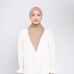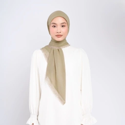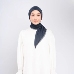 Hijab segiempat berbahan Paris Premium Jepang dengan hiasan bordir geometris elegan di bagian tepi. Kainnya halus, ringan, nyaman, dan tegak paripurna, mudah dibentuk serta cocok untuk penggunaan sehari-hari maupun acara formal.
